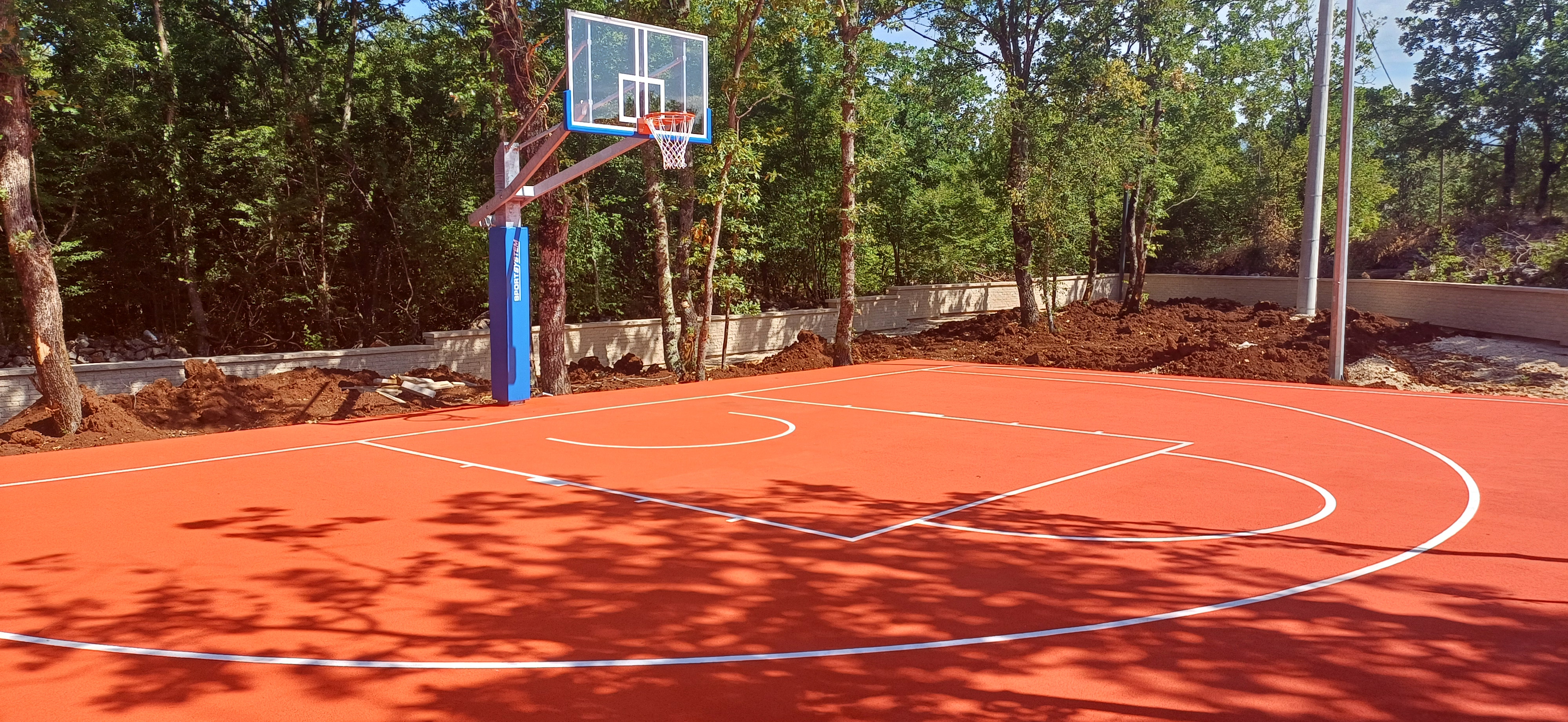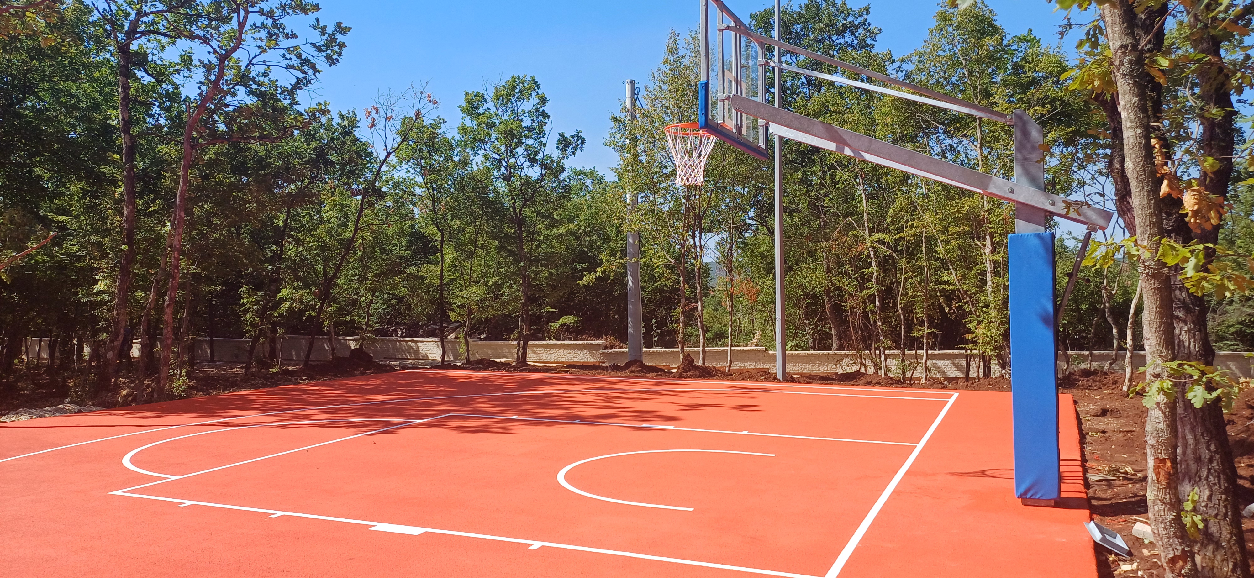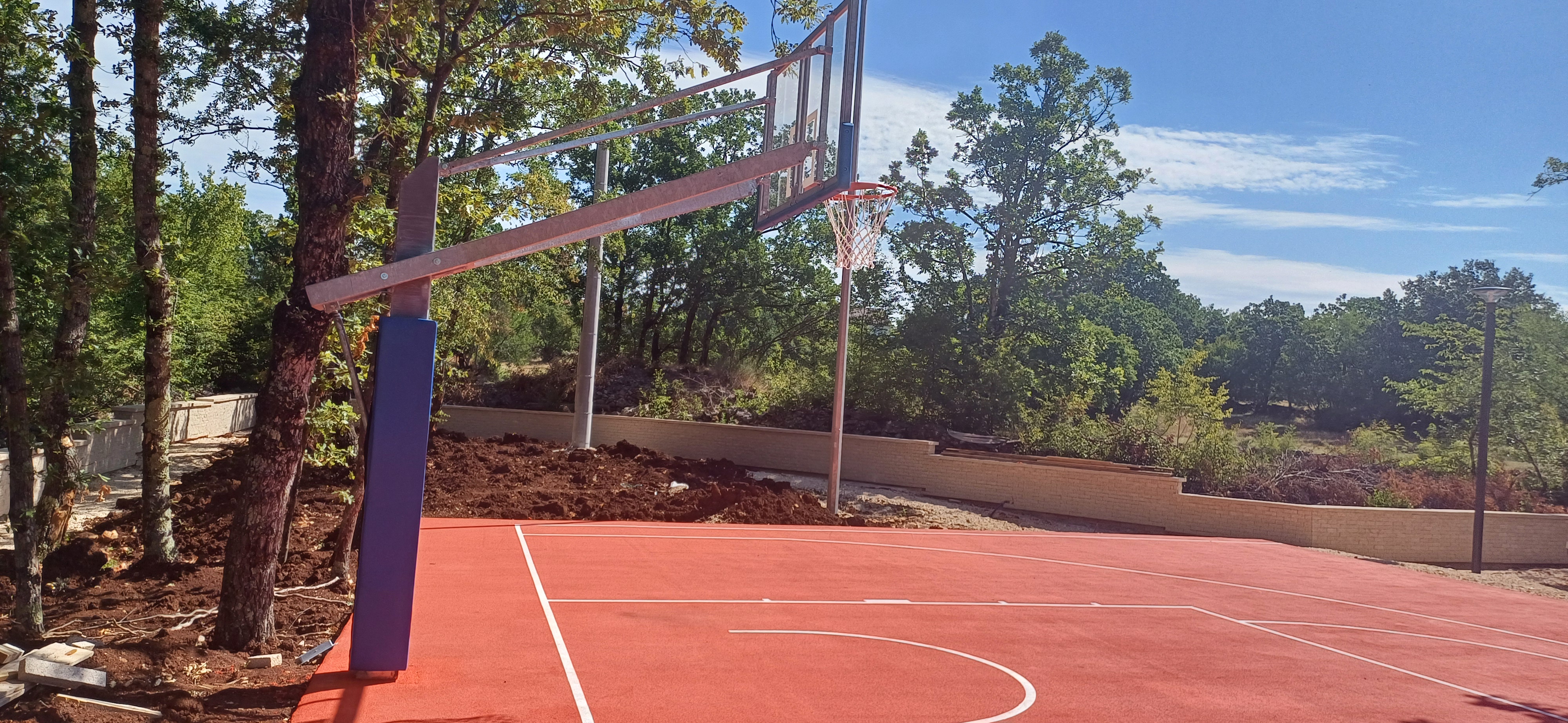 U mjesecu srpnju/ juli 2025. završeno je postavljanje terena za basket (sistem Full EPDM, d=15 mm) i montaža koš konstrukcije.