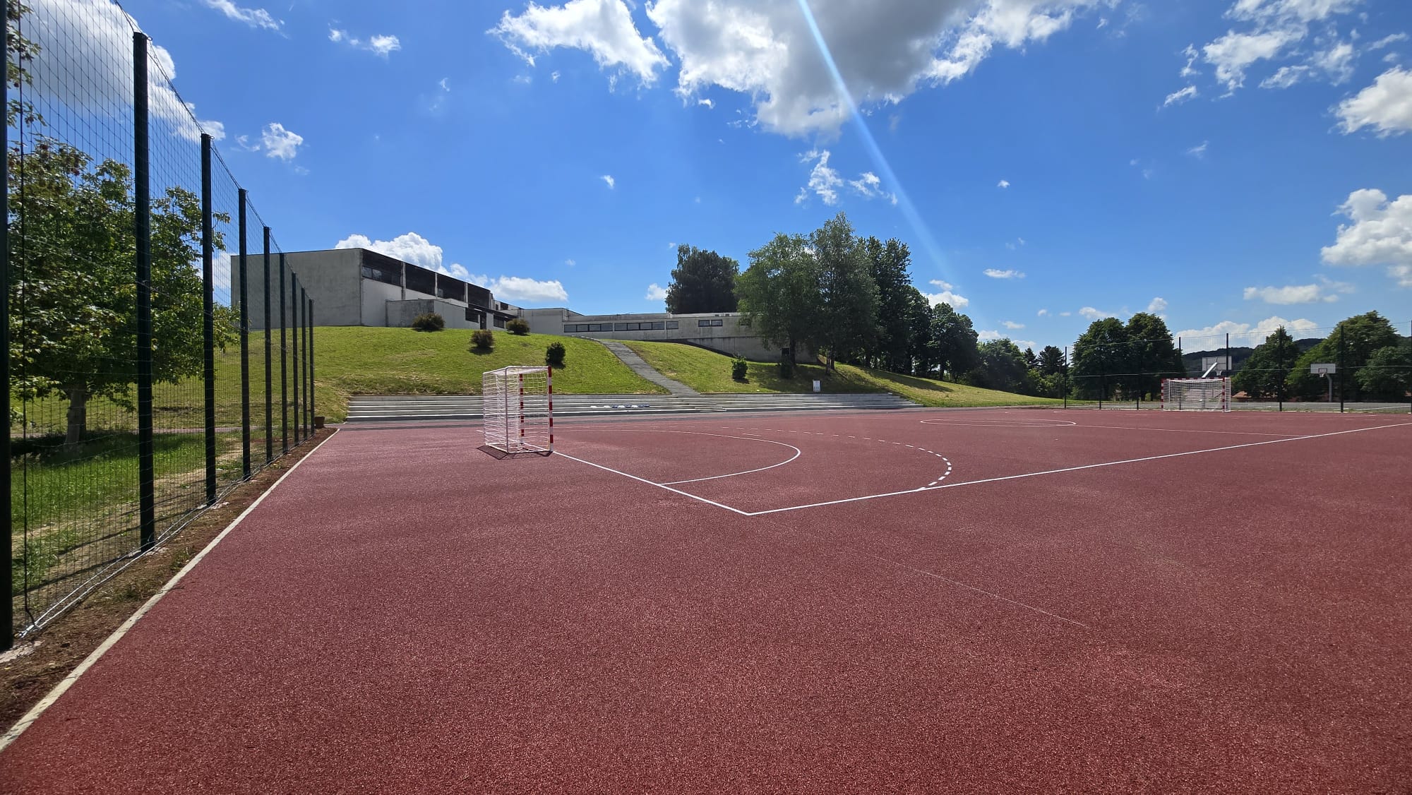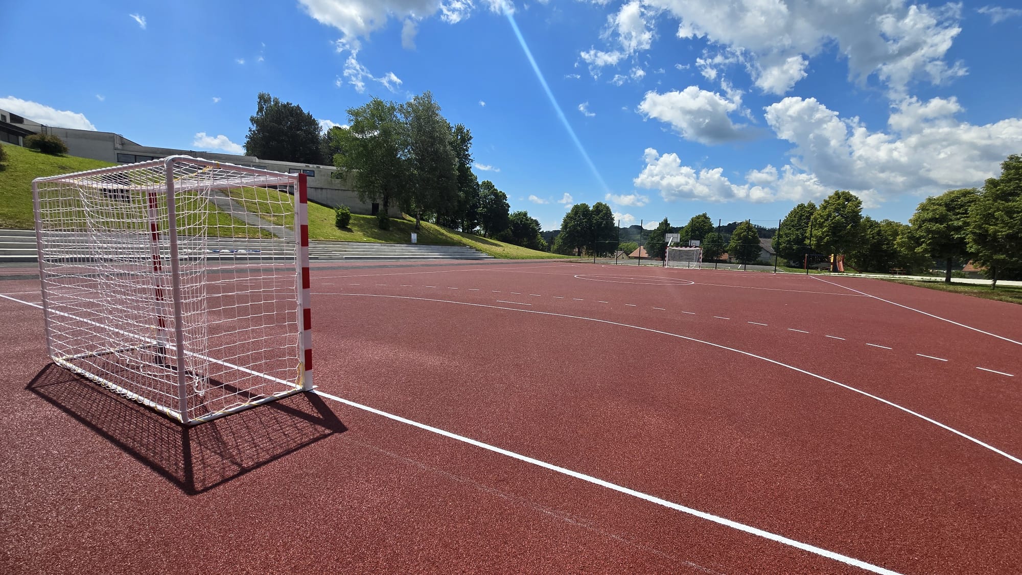 U mjesecu travnju/ aprilu završeno je postavljanje elastične sportske podloge, tartan d=13 mm na terenu za mali nogomet (cca 1500 m2) i prostoru atletske staze (cca 500 m2). Dopremljeni su i postavljeni golovi za mali nogomet/ rukomet kao i koševi.