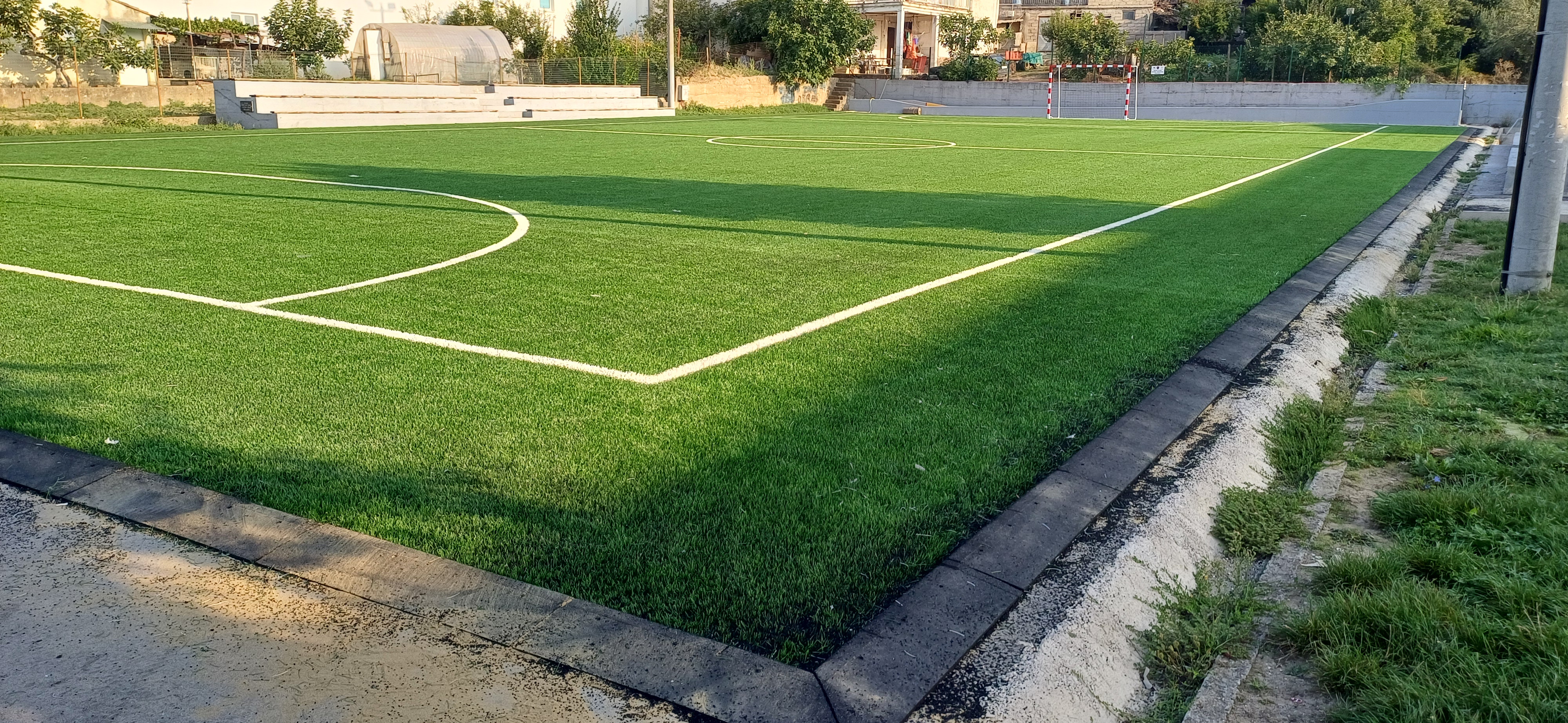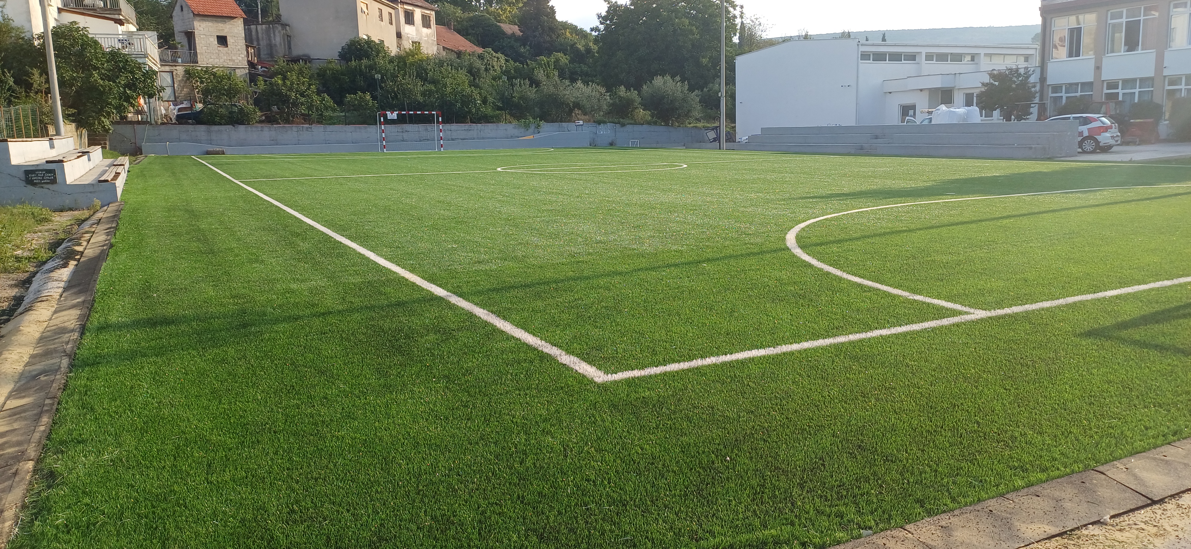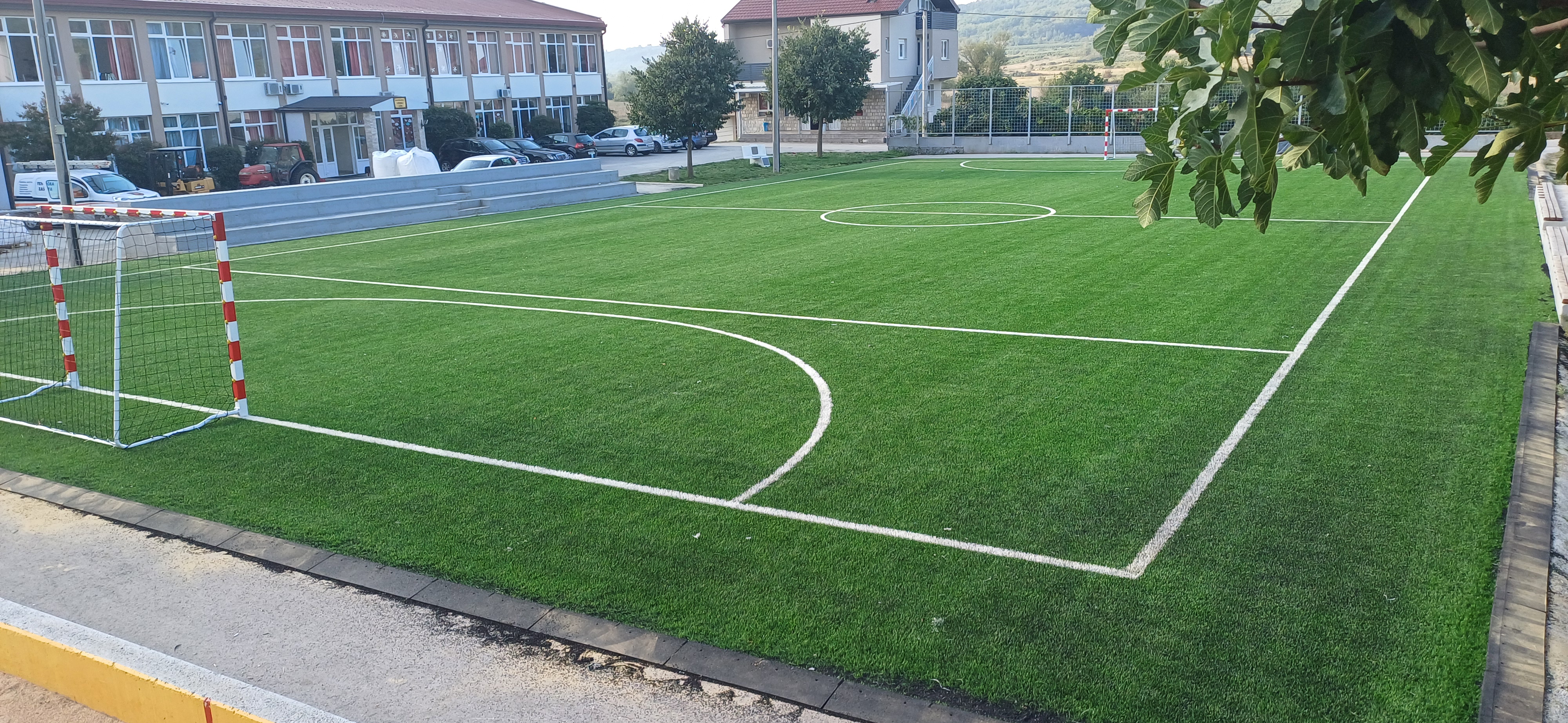 U mjesecu rujnu/ septembru 2025. završena je doprema i postavljanje umjetne trave visine 50 mm punjenje kvarcnim pjeskom i gumenim SBR granulatom.Površina terena sa umjetnom travom cca 1200 m2; Montirani su i gumeni rubnjaci trokutastog poprečnog presjeka visine 1 cm; širine 5 cm. Ukupna dužina rubnjaka cca 130 m.