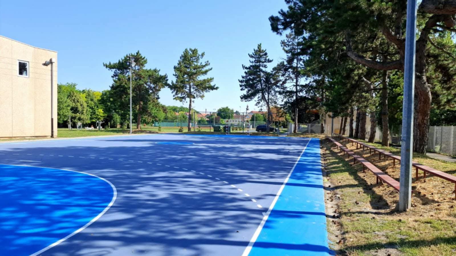 U mjesecu lipnju/juni 2025. dopremljen je materijal i izrađena je akrilna sportska podloga d=2-3 mm na asfaltnoj osnovi. Dva sportska terena: za mali nogomet/ rukomet i koša