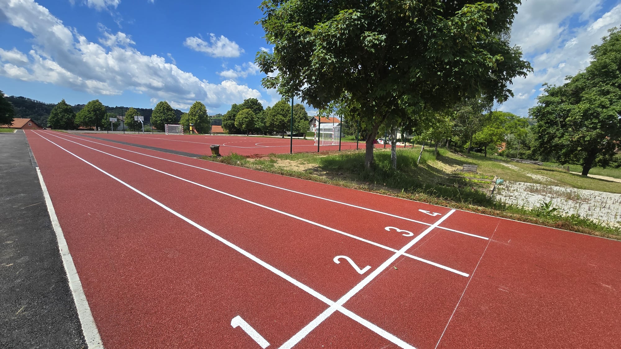 Projekat: Doprema materijala i postavljanje elastične sportske podloge- tartan na terenu za mali nogomet/ rukomet (cca 1500 m2); postavljanje atletske staze dužine 100 m (površine cca 500 m2 ) kao i montaža golova za mali nogomet/ rukomet i koševa.